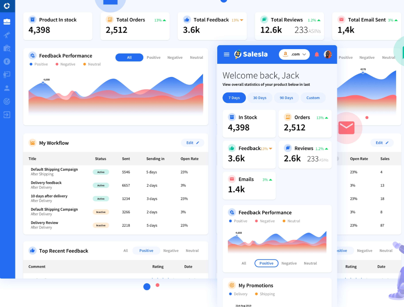 The better the reputation, the better the chances of winning the buy box. This fact compels Amazon sellers to garner ratings and feedback while addressing the negative ones. Several tools in the market help them automate feedback and among them, Salesla shines bright! Salesla is an AI-powered Amazon feedback software that makes your job of review management easy by automatically sending review and feedback requests to customers. This increases positive ratings while highlighting the negative ones, allowing you to cater to them.