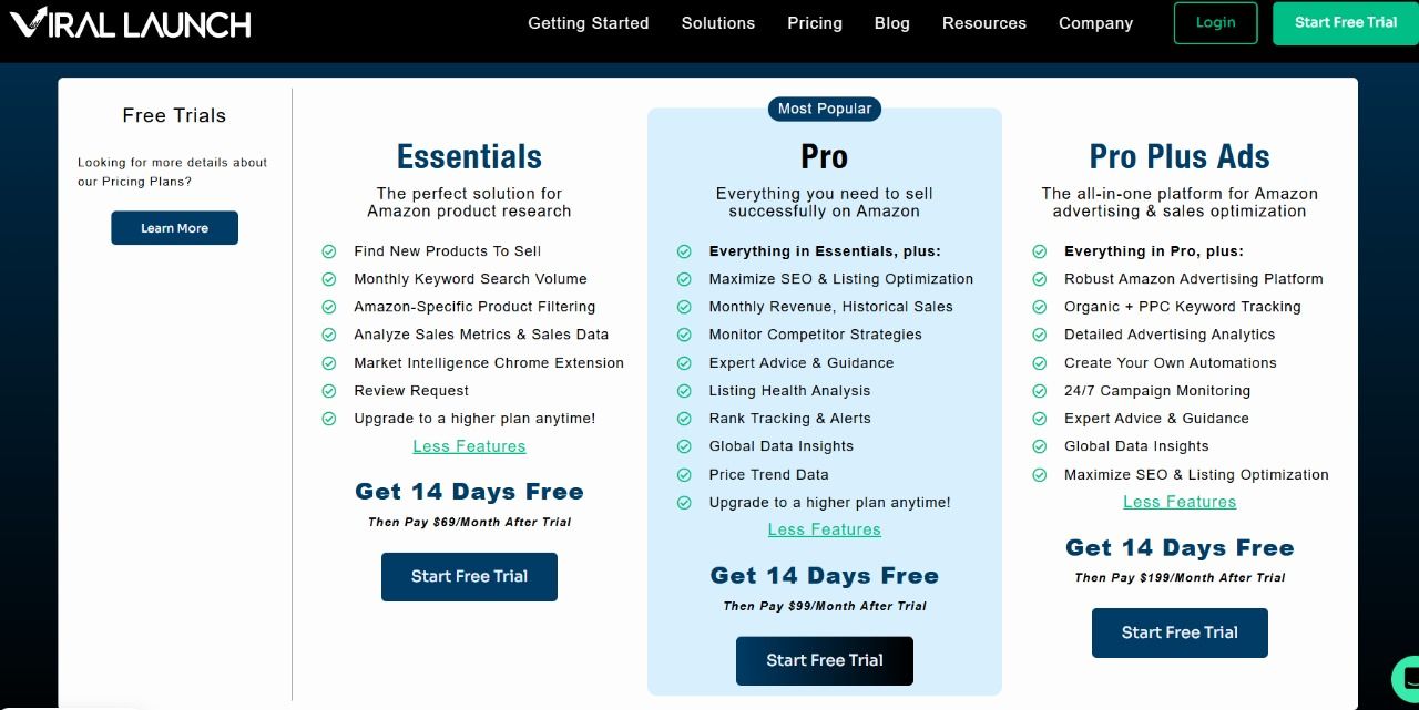 In addition to the previously mentioned plans, Viral Launch offers a 14-day free trial for new users, allowing sellers to explore the platform's features before committing to a paid plan